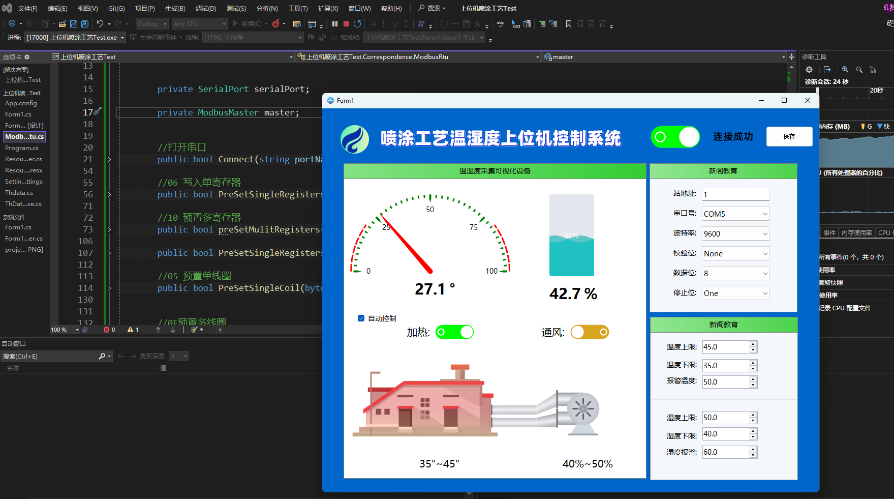 基于winform ModbusMaster SerialPort 实现的实时监控温度湿度,自动加热通风